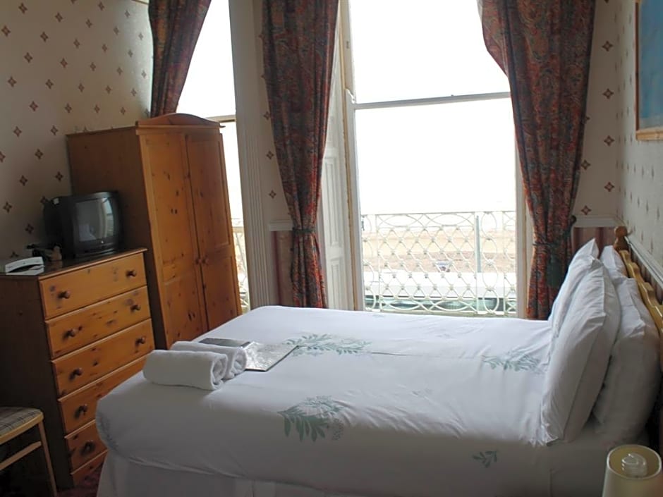 This twin room has a balcony with sea view, a tea/coffee maker and a TV with a DVD player.